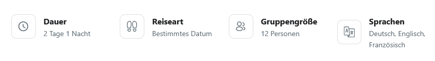 Bitte beachten: Dieser Ausflug findet auf Anfrage statt. Sie können Ihre Wunschdaten online reservieren. Wir klären die Verfügbarkeit ab und melden uns dann bei Ihnen mit weiteren Schritten.