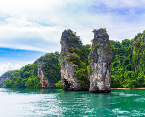 Kanufahren in Koh Hong. Entdecken Sie die atemberaubende Schönheit der smaragdgrünen Lagunen von Koh Hong. Tauchen Sie ein in die beruhigenden Klänge der Natur, während Sie auf dem ruhigen Wasser entlang der Kalksteinformationen paddeln.